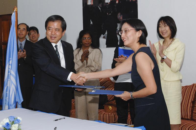 Akordu ida-ne'e asina husi Mikiko Tanaka, Diretór PNUD iha Timor-Leste, no Iwao Kitahara, Embaixadór Japaun ba Timor-Leste, iha sira tuirmai ne'e nia prezensa hanesan Jose Luis Guterres, Vise Primeiru Ministru, Tomas Cabral, Diretór STAE, Makiko Kukita, Vise Ministru Parlamentár ba Asuntus Estranjeirus Japaun nian, no Ameerah Haq, Reprezentante Espesiál ba Sekretáriu-Jerál Nasoins Unidas nian iha Timor-Leste.